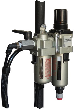 Motors that run on compressed air require proper air preparation. These fans require an air filter, regulator AND automatic inline lubricator feeding the air motor. Air supply should be filtered to 5 microns, regulated to 100 PSI maximum and must include a mist oiler (lubricator).