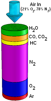 the right) in an order dependant on each gases' natural characteristics. This