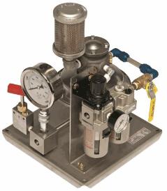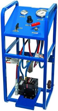 Power Unit Advantages Power Units have pumps mounted and plumbed with both air controls and high pressure liquid controls. This allows for portability and/or easy system installation as well as control of pump outlet pressure and flow rate, simple high pressure bleed-off, and automatic lubrication/filtration of incoming air. |