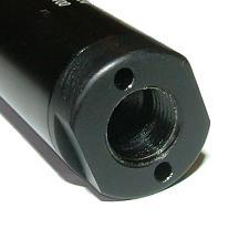 A2. If you buy an MMF or MMD there will only be one 1/8 NPT inlet port (lower photo on the right). The exhaust air will escape from two small holes on either side of the inlet port as shown in the picture to the right. You can NOT easily add additional muffling or re-routing of the exhaust air with these MMF or MMD motors.