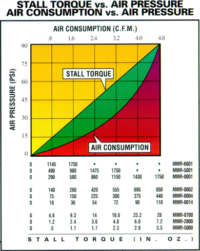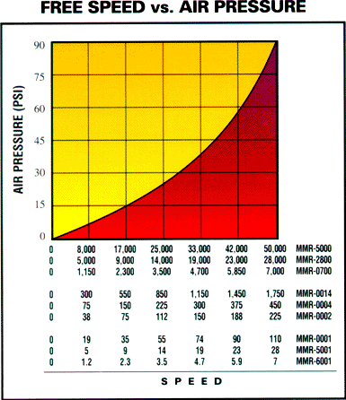 150 PSI, and their speed can be varied by changing the supply pressure or flow rate. Lubrication is